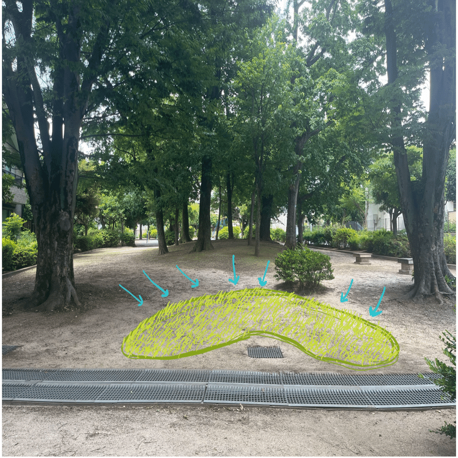 武蔵野市立みやび青葉公園の雨庭・レインガーデンの計画・デザイン