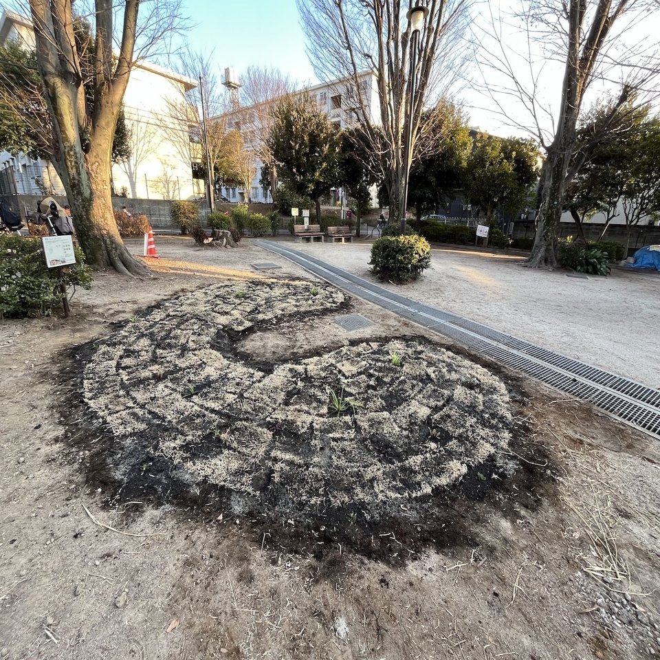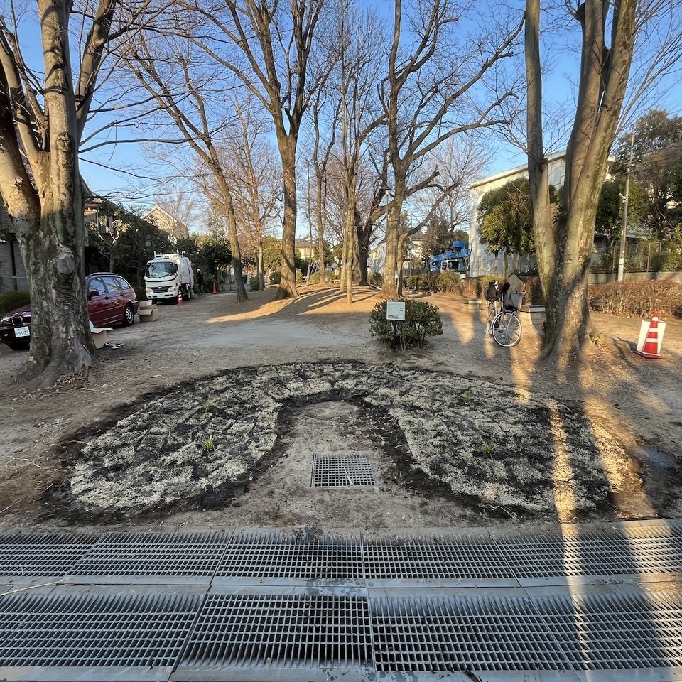 竣工後2か月の4月前半では、すっかり植栽も定着し、いい感じの木陰のグリーンマットが出来ているのが確認された。これから踏圧にどのように耐えているくかは経過観察が必要であるが、混植により1種類の植物だけでなく、複数のグランドカバーを仕込んでいるので、適応するものがうまく残っていくことを期待する。雨水を下水道流入前にキャッチしてゆっくりと武蔵野のローム層に戻しつつ、子どもたちや公園利用者の憩いの場としても持続することができれば幸いである。