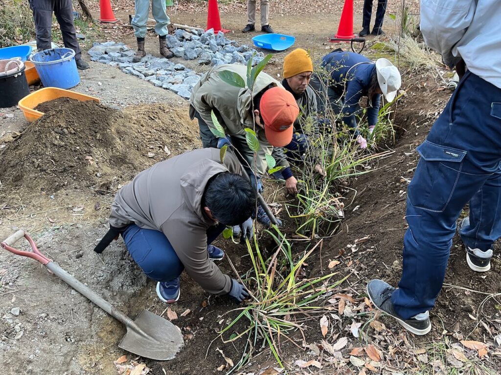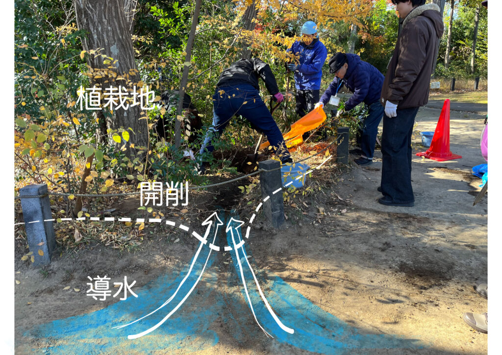 令和7年度には、雨庭の維持管理を学ぶ市民ガーデナー向けの植栽ワークショップと、長池公園内園路の泥水抑制を行う雨庭づくりを通して雨庭(レインガーデン)の計画・デザインと施工技術を学ぶ造園事業者向けのワークショップを実施しています。